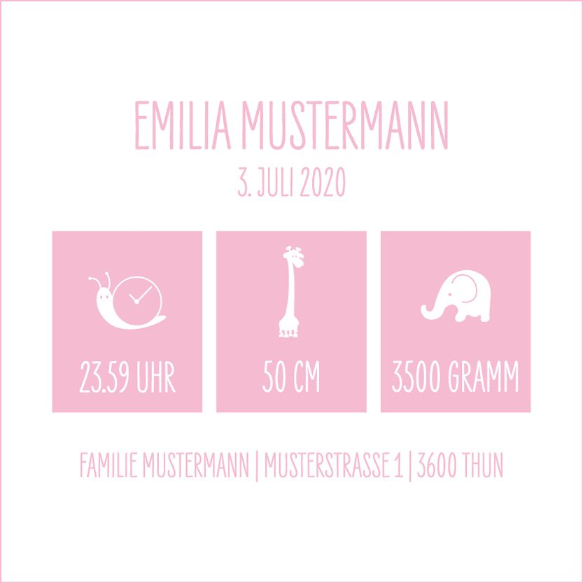 Für eine Freundin durfte ich eine Geburtskarte gestalten. Um die Privatsphäre der Familie zu schützen, habe ich den Namen und die Angaben für meine Website fiktiv angepasst. Design mit Adobe InDesign und Adobe Illustrator.